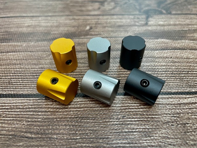 ■カラー■ ・金(ナシジ) ・黒(ナシジ) ・チタン(ナシジ) ■サイズ■ ・ツバ部 Φ15 ・外径 Φ13~10への斜め ・高さ L15 ・ミリ(Φ6.0)インチ(Φ6.4) ■イモネジ■ 購入時のツマミにM3イモネジ装着済み ■付属品■ 六角レンチ×1本