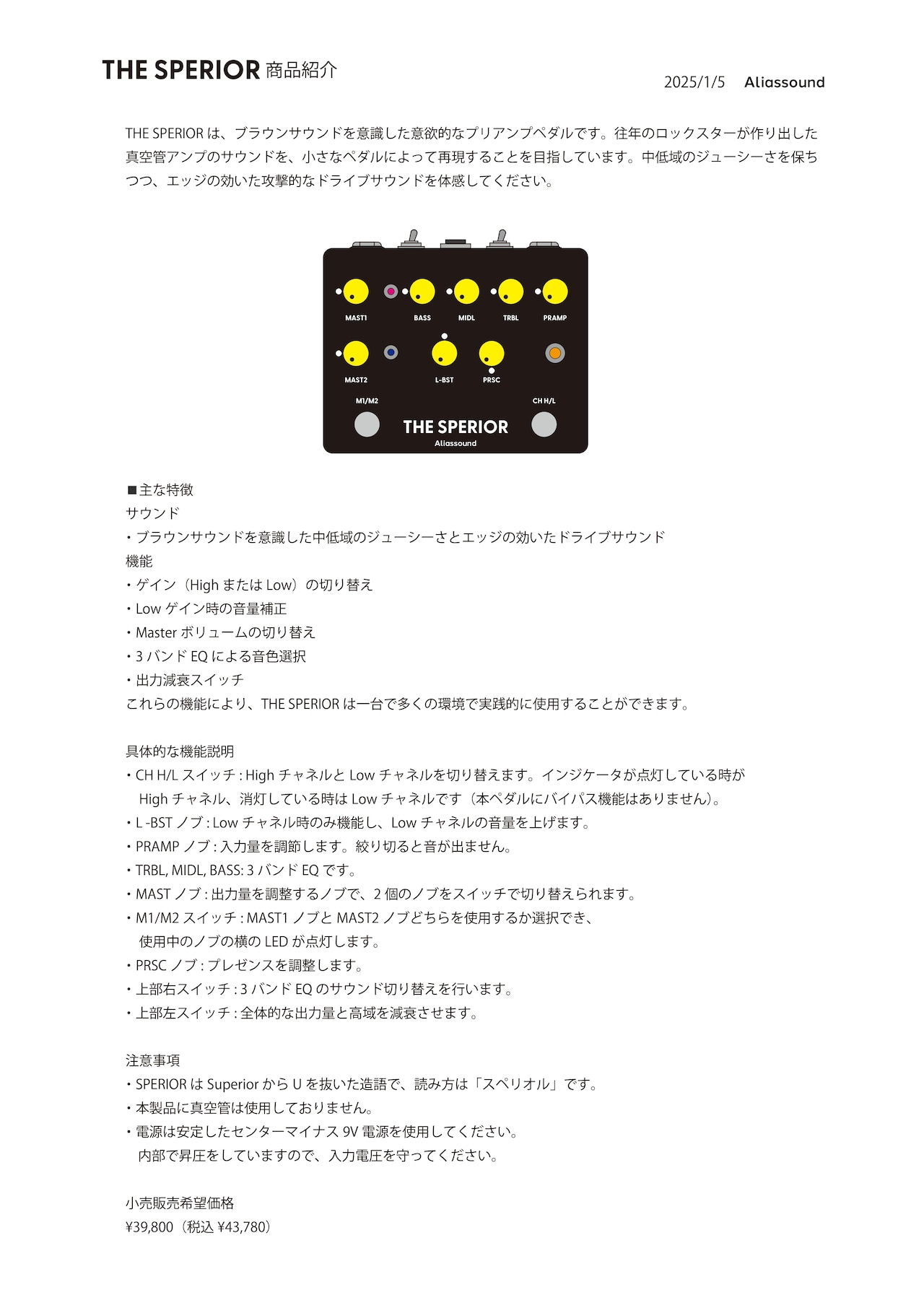 【Alias Sound】(2台限定)THE SPERIOR(スペリオル)