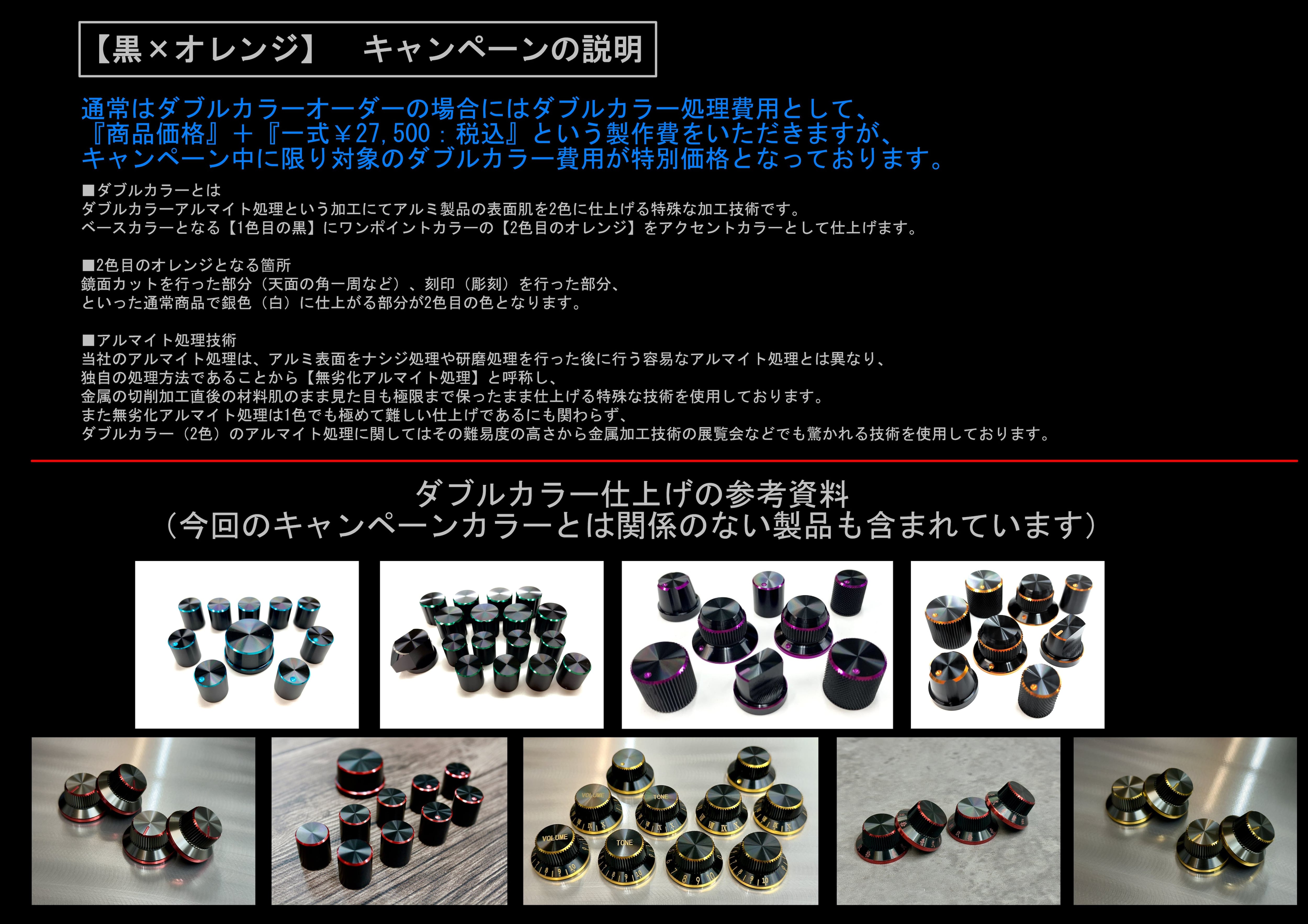 (黒×オレンジ)キャンペーン【T.N-DESIGN】(1セット:4個入)アルミ:平型ハットノブ
