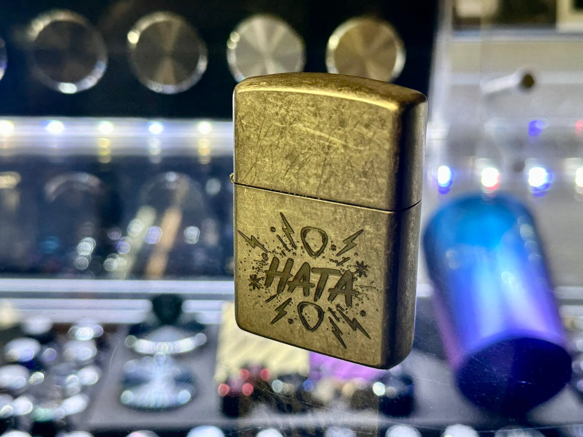 オリジナルのHATAロゴが彫刻されたZippoライターです。