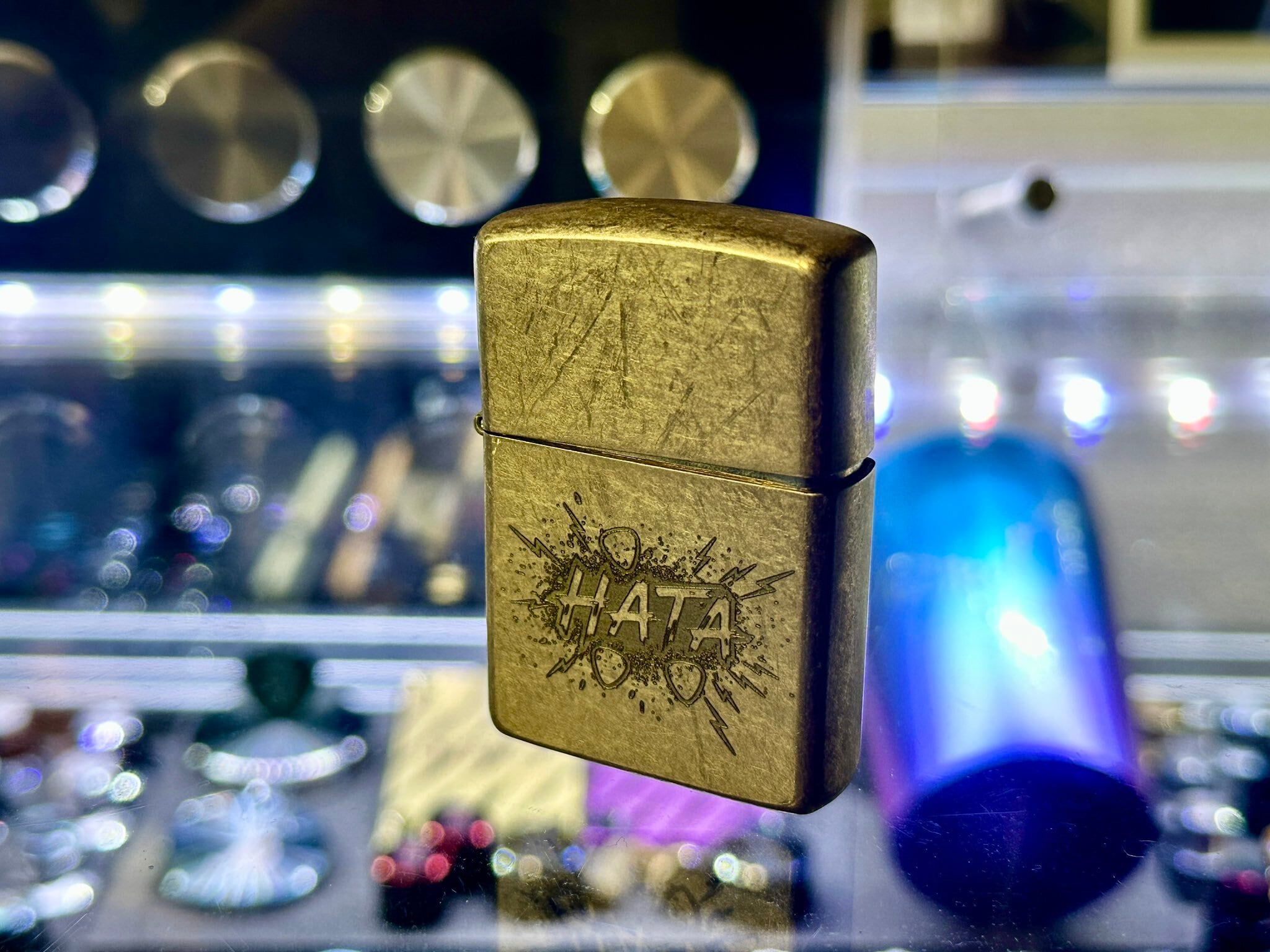 オリジナルのHATAロゴが彫刻されたZippoライターです。
