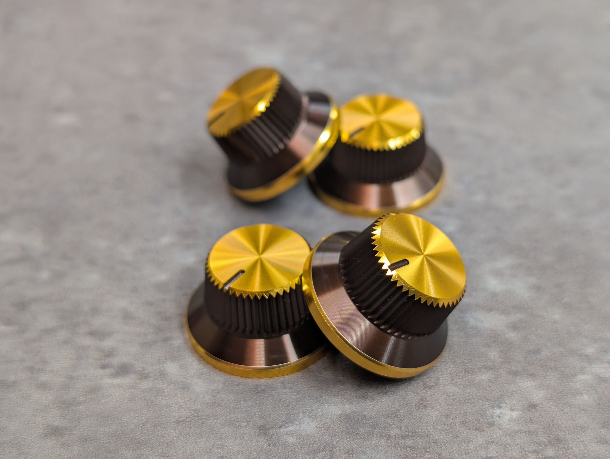 (在庫限り)【T.N-DESIGN】平型ハットノブ(4個入り)(茶色×金:天面金色、茶色ライン溝切り)