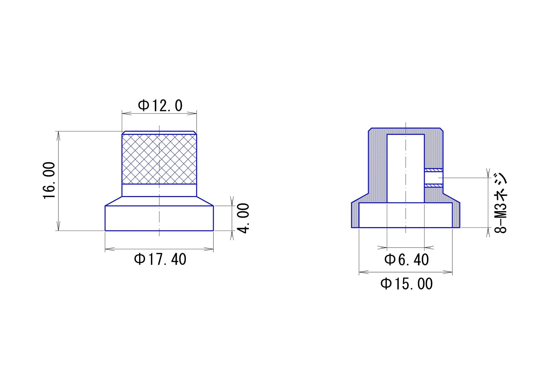 鍔部Φ17.5、ツマミ部がΦ12と使いやすいサイズとなっております。