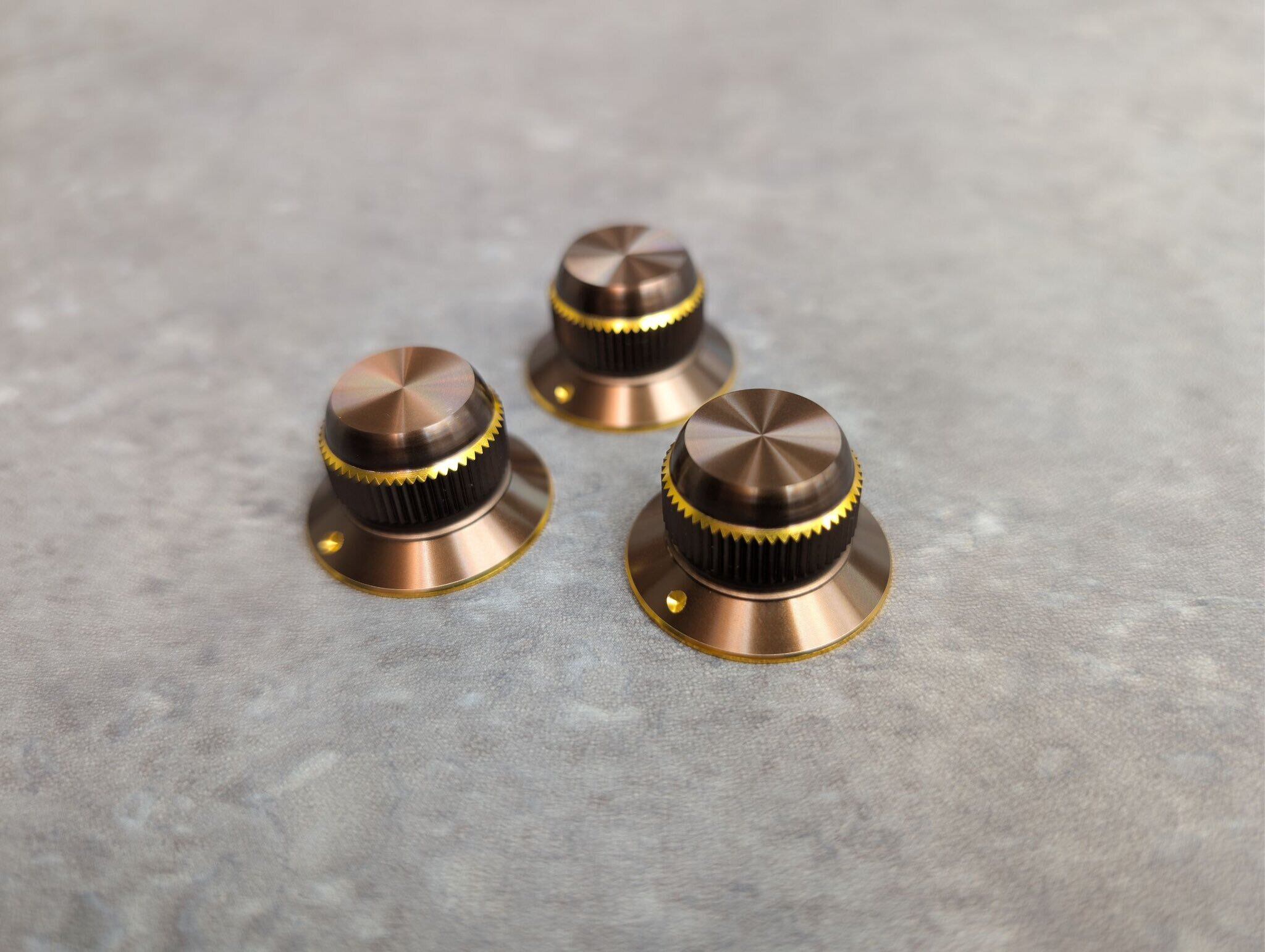 (在庫限り)【-HATA-】ヒラメローレット・ハットノブ(3個入り)(茶色×金:ドット)