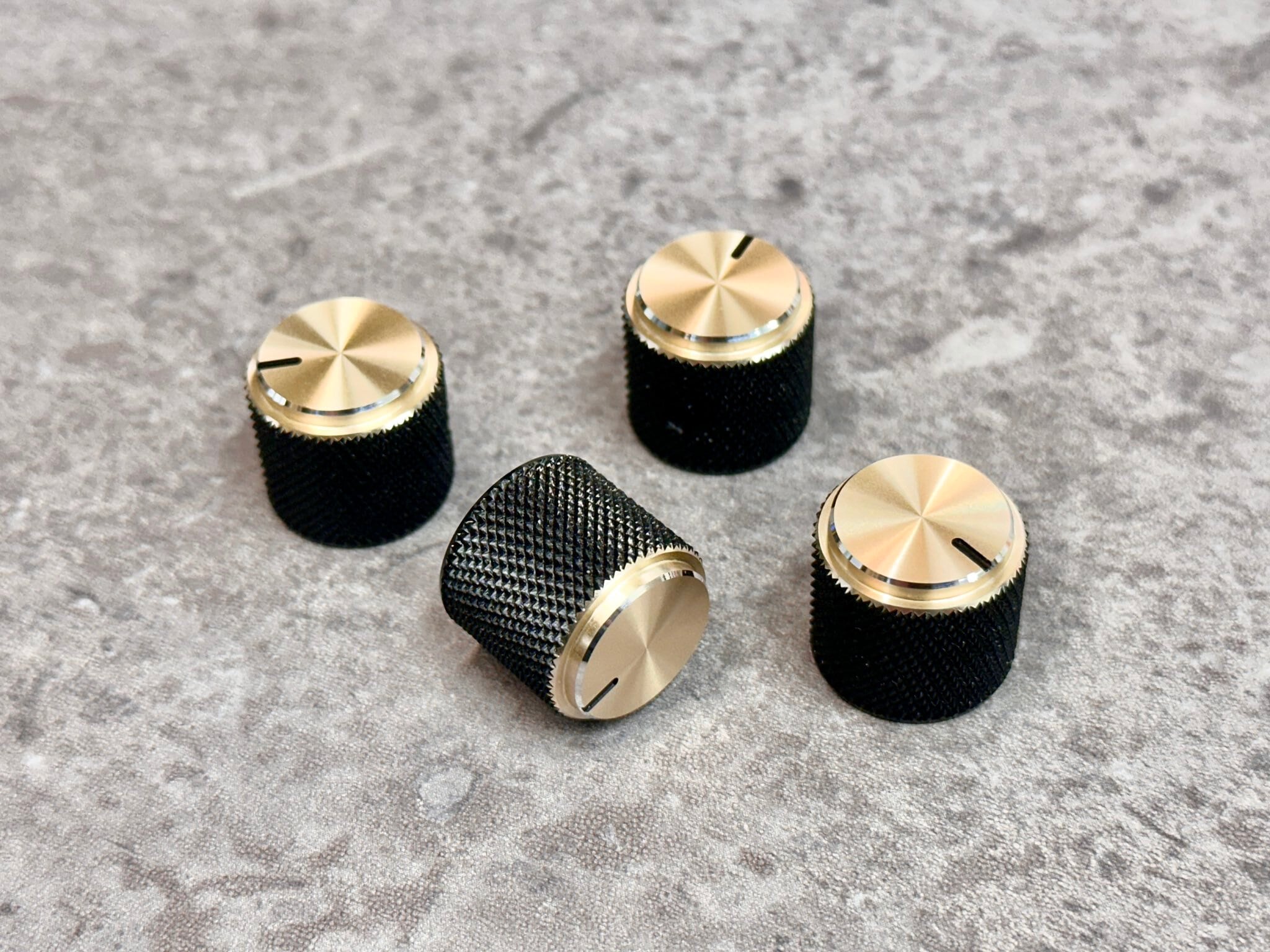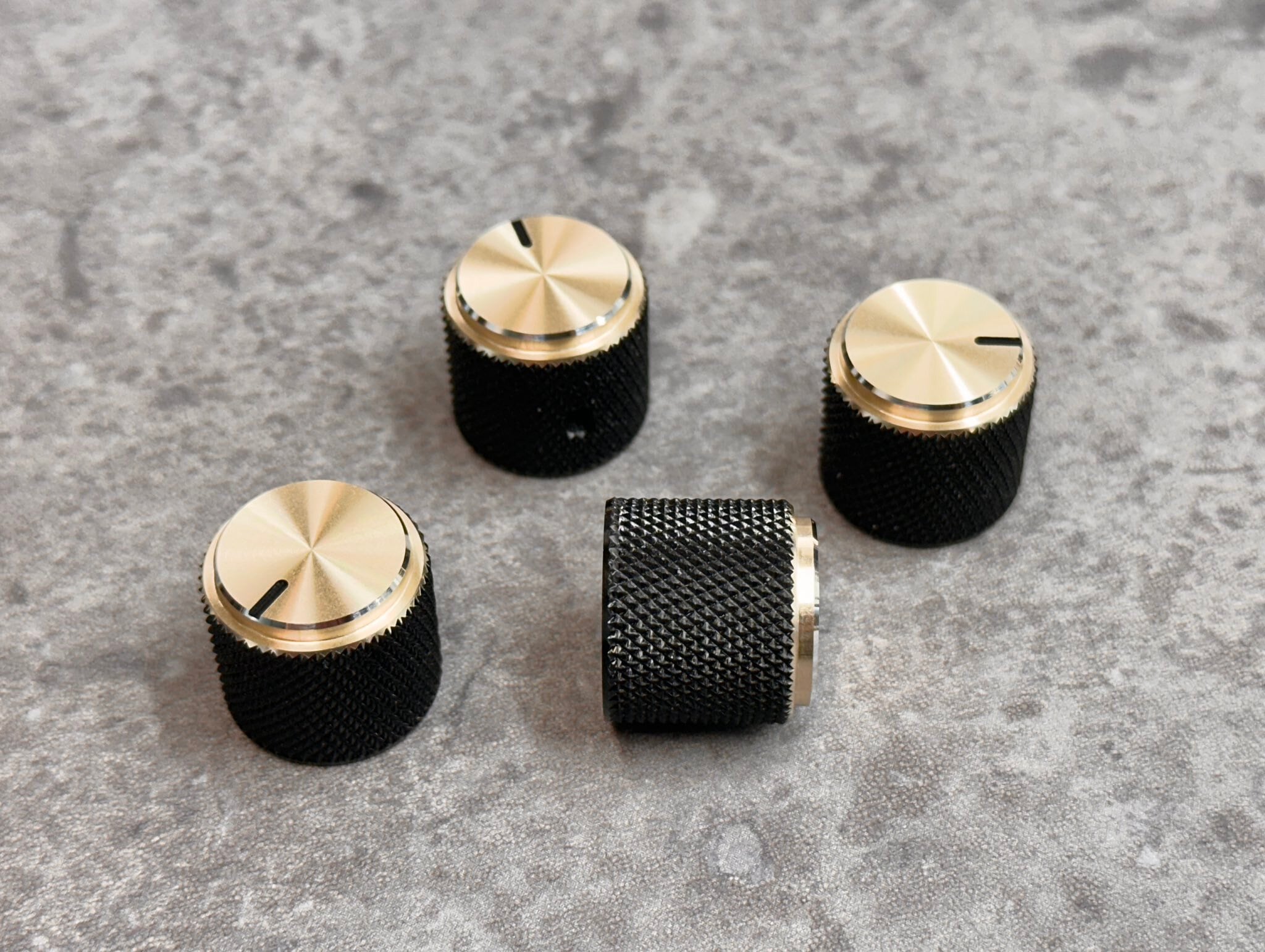 (在庫限り)天面段付きアヤメストレートノブ(4個入り)(黒×Bゴールド)