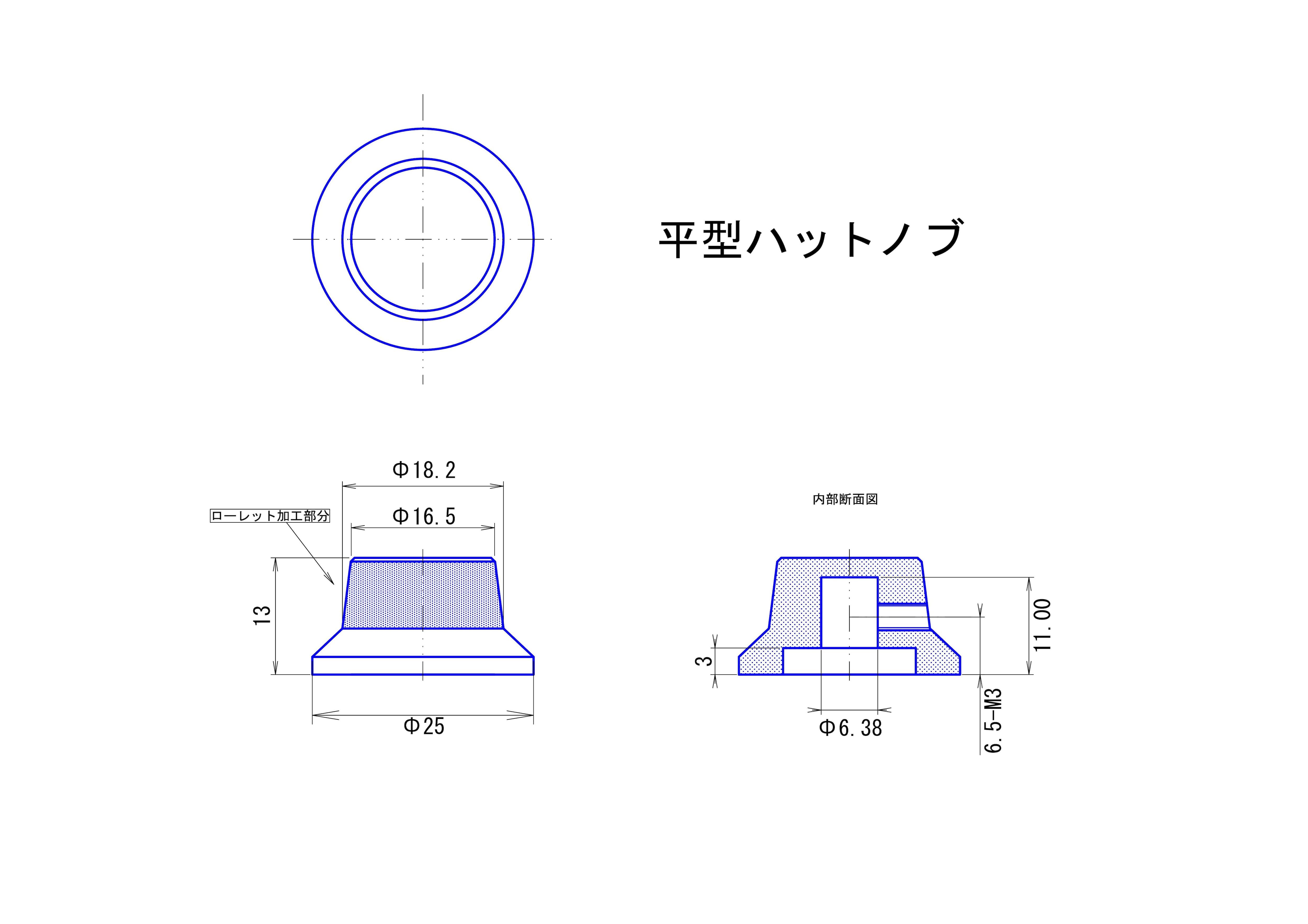 (在庫限り)【T.N-DESIGN】平型ハットノブ(3個入り)(黒×青:天面、ツバ部2色目)