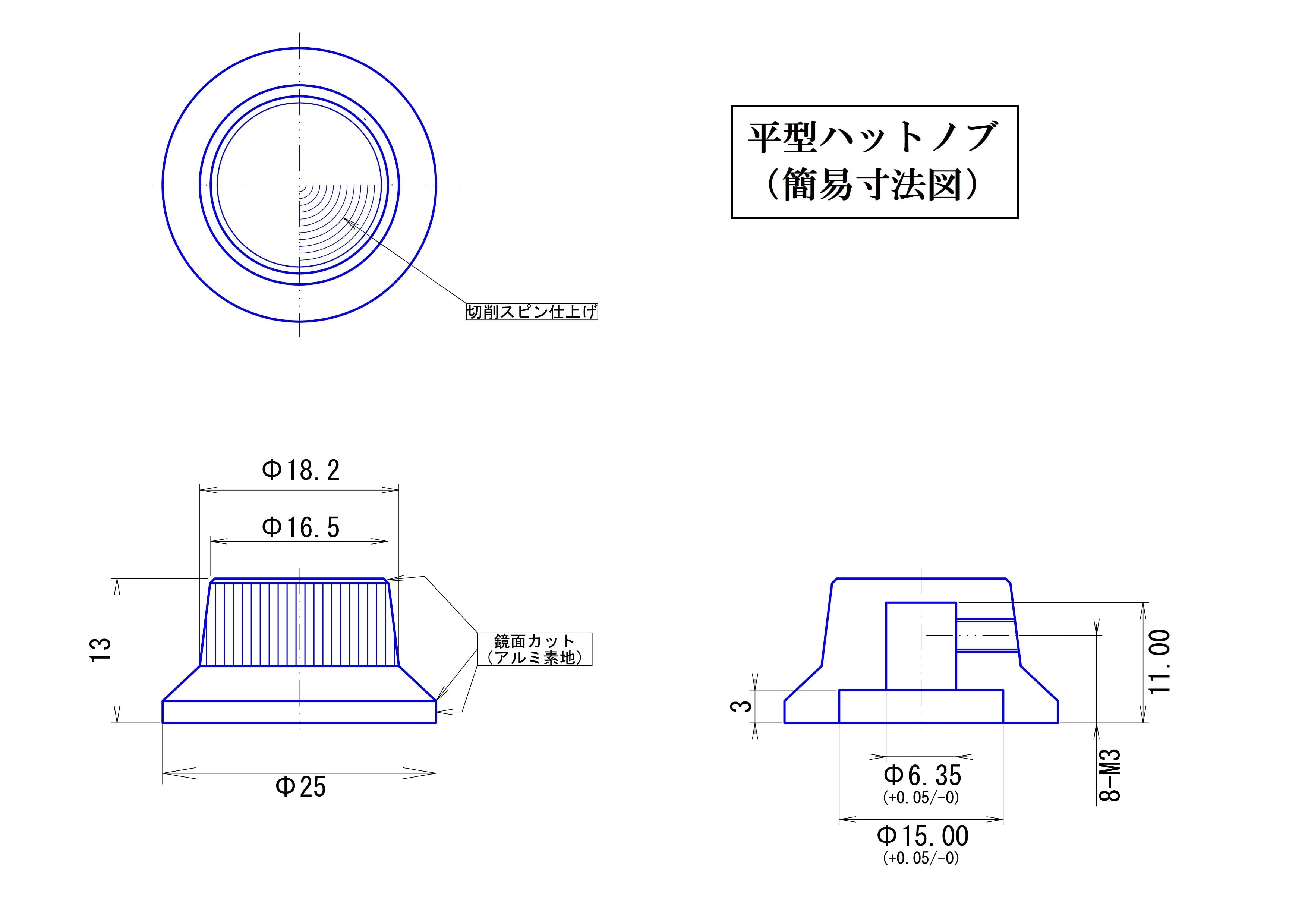 【(黒×金)キャンペーン】(1セット:3個入)アルミ:平型ハットノブ