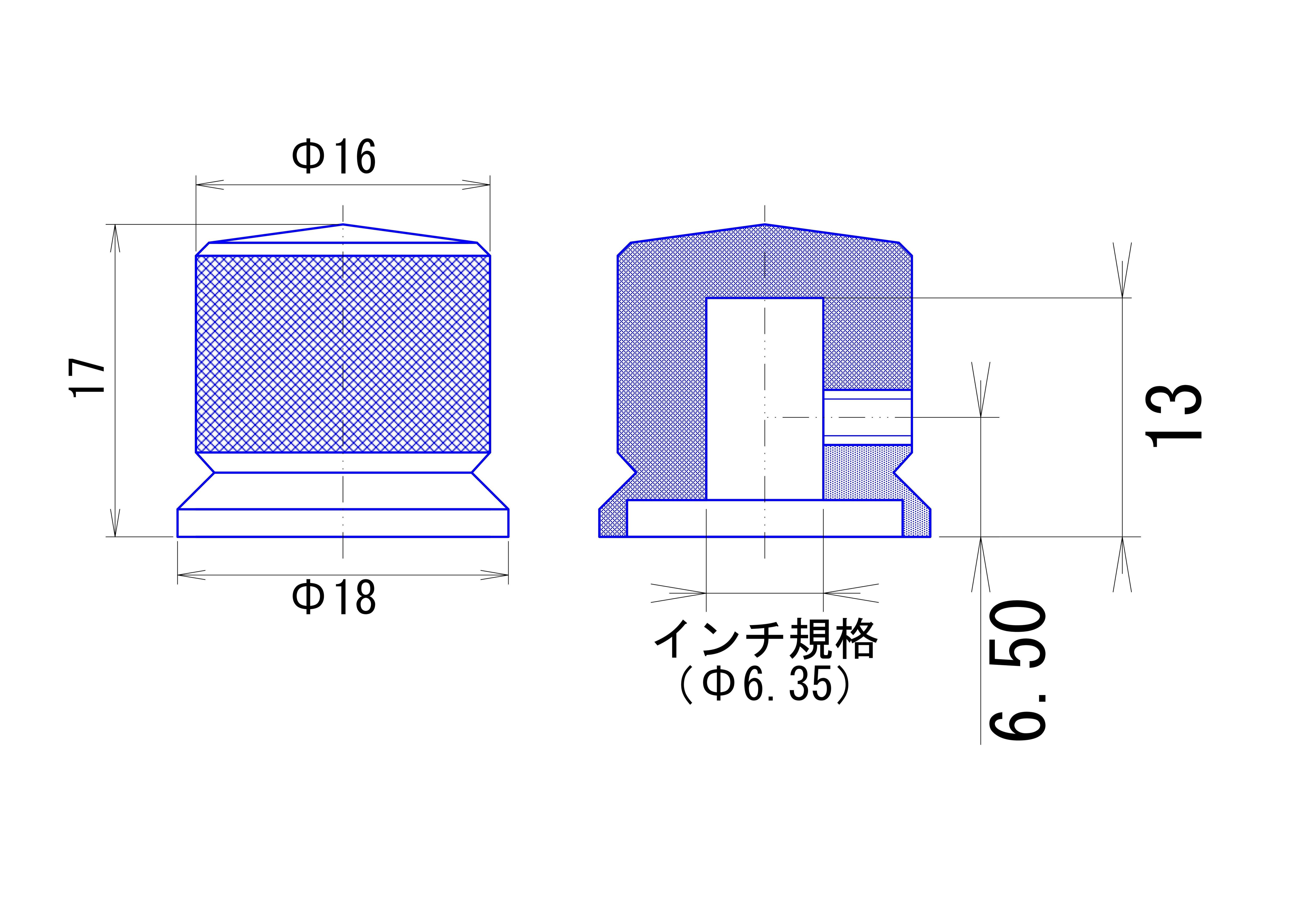 ・ローレット部にアルマイト皮膜の剥がれによる白い点がある場合がございます。