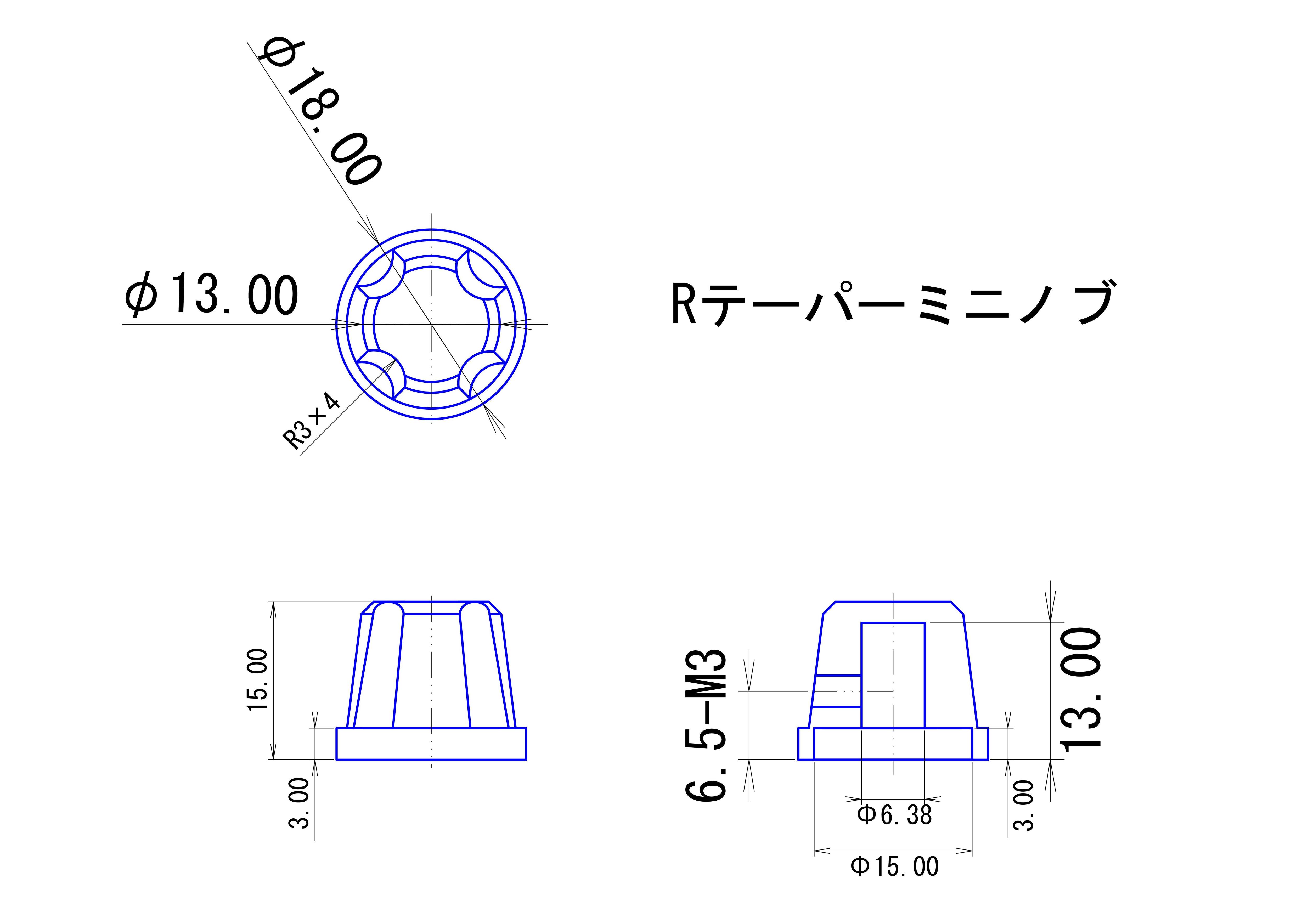 【(黒×金)キャンペーン】(1セット:4個入)Rテーパーミニノブ