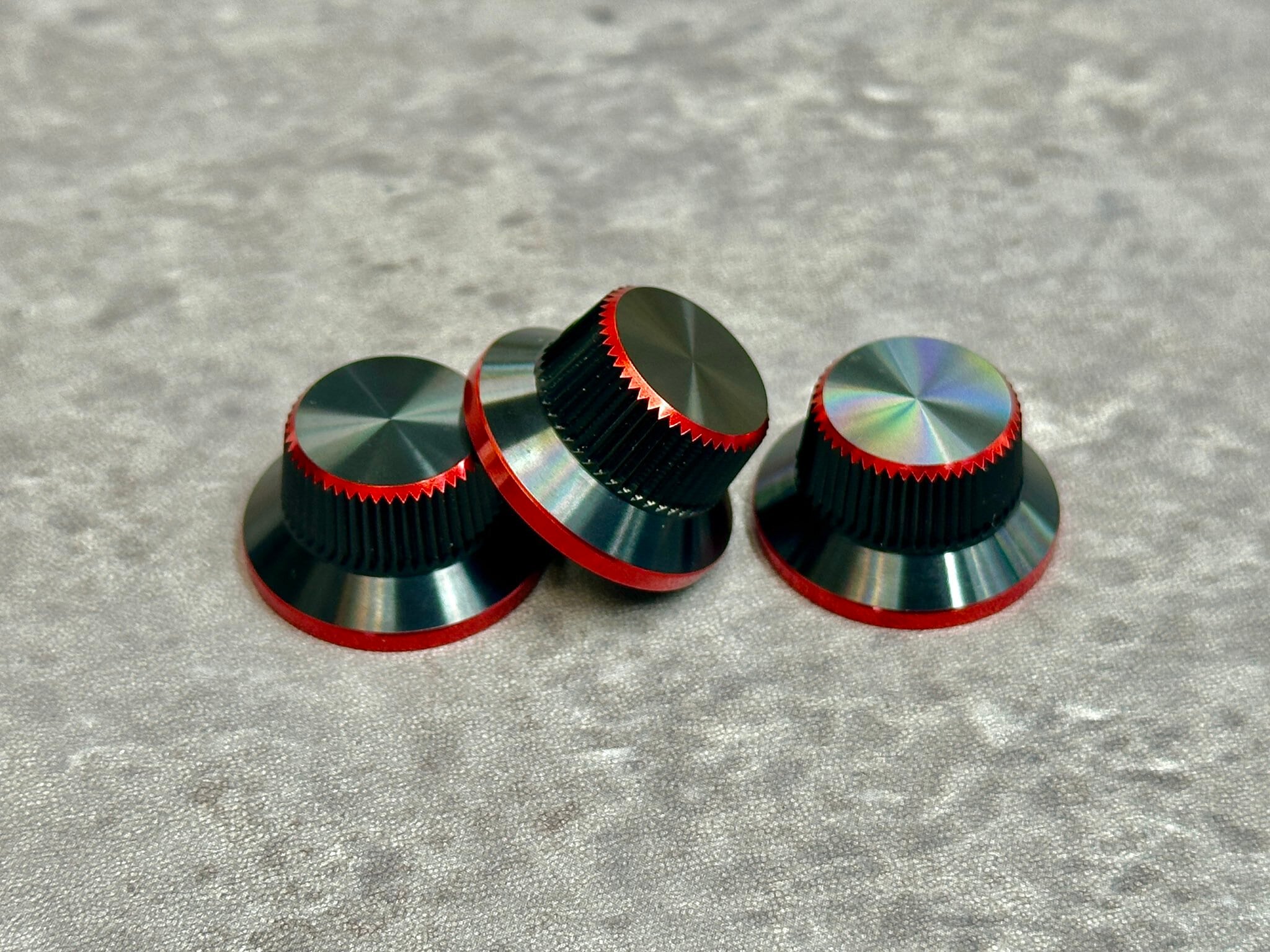 (在庫限り)【T.N-DESIGN】(1セット3個入)平型ハットノブ(黒×赤)