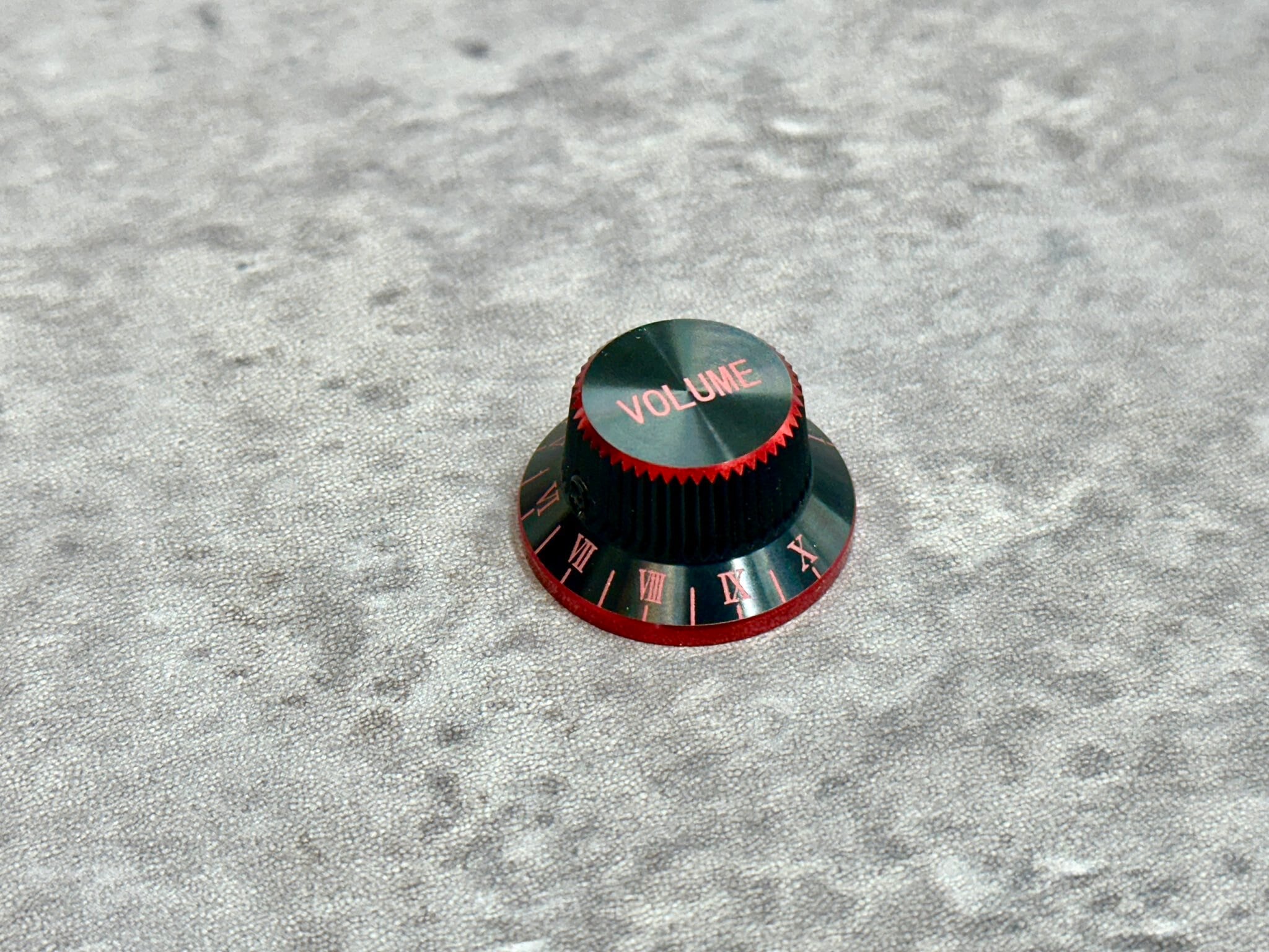 (在庫限り)【T.N-DESIGN】(単品)平型ハットノブ(黒×赤:VOLUME刻印+メモリ付き+Ⅰ~Ⅹローマ数字刻印)