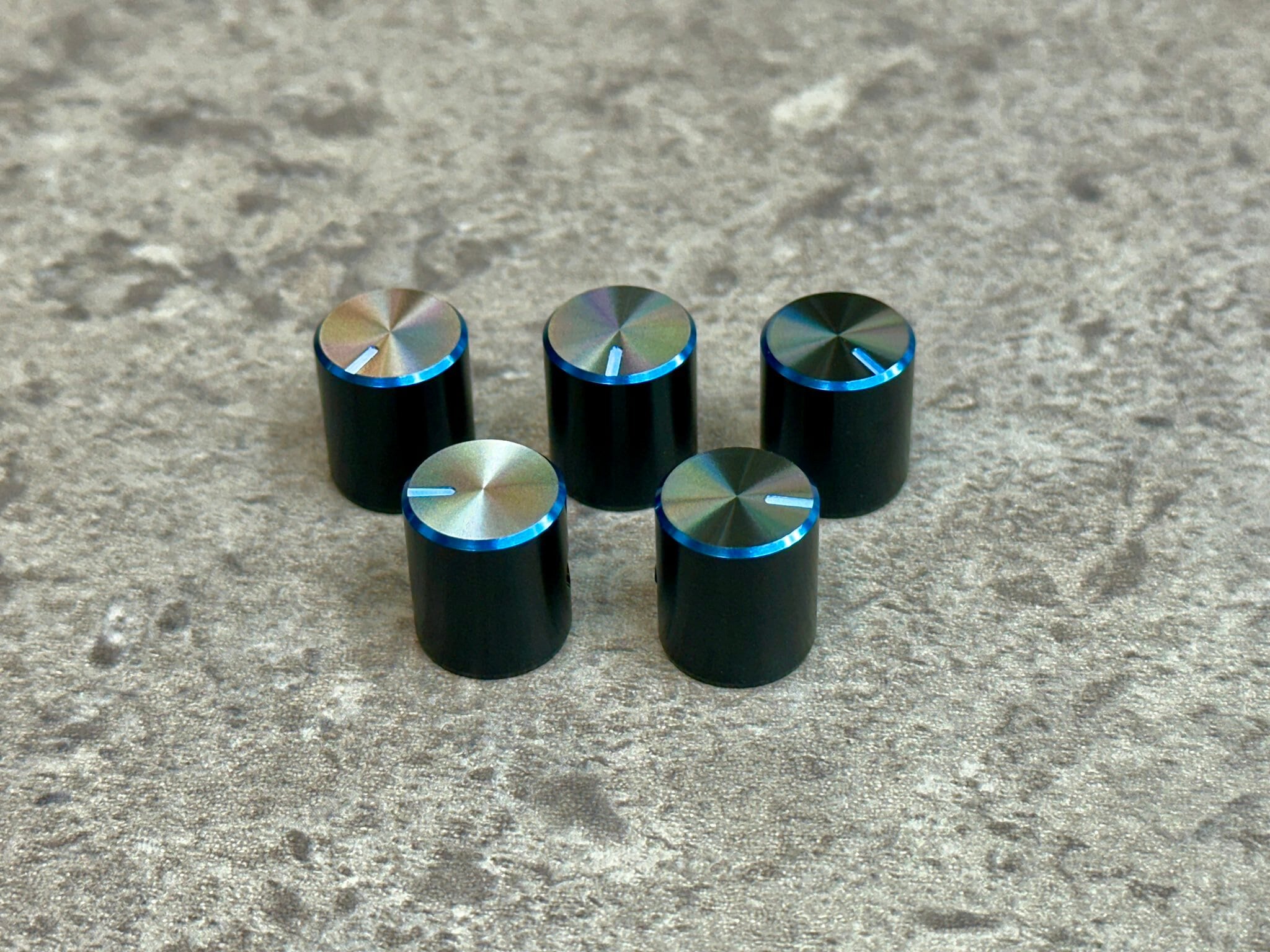 (在庫限り)【-HATA-】ミニノブ(5個入り)(黒x青:ライン溝切り)